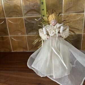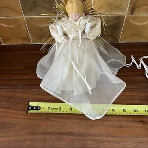 Vintage Angel Christmas Decor Tree Topper With Candles White / Gold Works