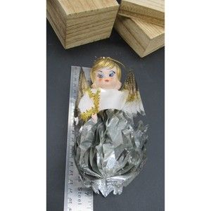 Vintage Angel Christmas Ornament Silver Foil Wings Hand Painted Made In Japan