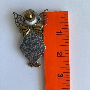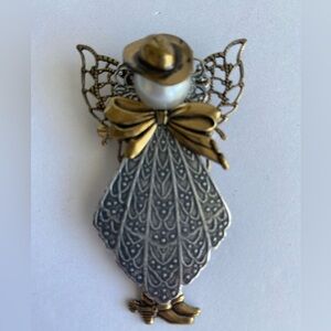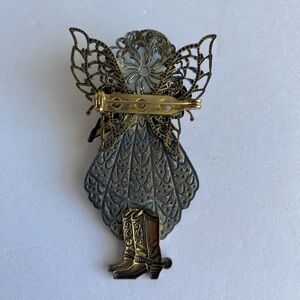 Vintage Angel Cowgirl Brooch Pin 2.25" H Pearl Cowboy Hat & Boots Gold Silver