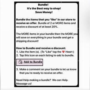 Bundle with other items from our closet to save on shipping. If you need help or have questions on how to bundle, please ask. We are here to help. Bundles of 2 or more items typically are eligible for a price and shipping discount .