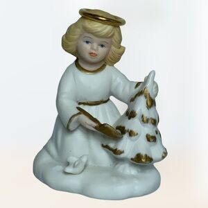 Vintage Angel Golden Halos Collection Nurturing Natalie White Gold Figurine by Bronson 1996