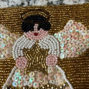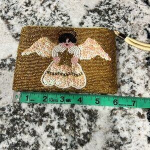 Vintage Angel Purse Beaded Ermo Wristlet Bag Coin Gold Christmas Holiday