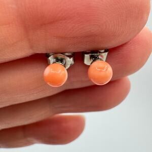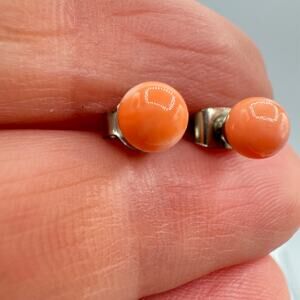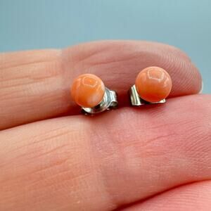 Vintage Angel Skin Coral Pink Stud Earrings Carved Ball Sphere 5 mm Beachy Ocean