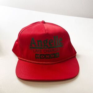 Vintage Angelle Honda Snap Back Red Canvas Hat Rope Lake Charles Louisiana