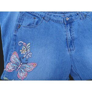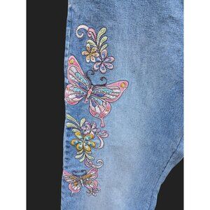 Vintage Angels Womens Denim Cropped Jeans Embroidery Butterfly Floral Size 20