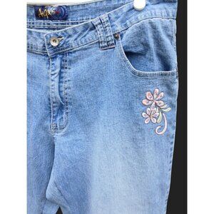 Vintage Angels Womens Denim Capri Jeans Embroidery Butterfly Floral Size 20 Y2K