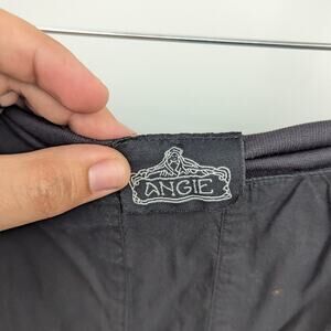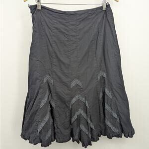 This Angie boho-style skirt (size M, see measurements below) features a romantic, flowy silhouette with chevron lace insets, paneled stitching, and a ruffled hemline. The lightweight crinkled fabric gives it a relaxed fit that moves beautifully. Perfect for casual summer looks, festival wear, or pairing with boots for a modern boho aesthetic.