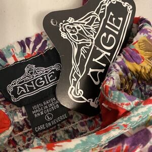 The Vintage Angie MaxiDress in size L is a beautiful floral Bohemian-inspired piece perfect for various occasions such as weddings, parties, or casual outings. The dress features a V-neckline, button closure, and sleeveless design with strappy sleeves. Made from lightweight rayon fabric with a pleated empire waist, this long dress exudes a 90s Y2K vibe with a touch of retro charm. The dress is ideal for summer, fall, and spring seasons and is hand wash only to maintain its quality. Perfect for women who appreciate a fairy-like, Alice in Wonderland aesthetic with a hint of peasant flair.