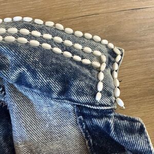 Vintage Angiolo Bellini L Embellished Jean Jacket Retro 80's Disco Beaded Lace