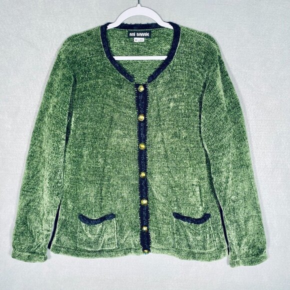 Vintage Ani Barrie Sweater Womens M Green Button Up Cardigan Fuzzy