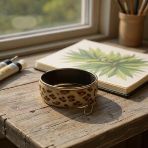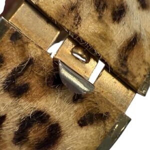 Vintage Animal Print Brown Leopard Fur ( faux ?) 1”W Statement Bracelet