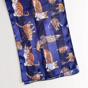 Vintage Animal Print Cats Scarf Wrap Semi Sheer Striped Blue White Orange Satin