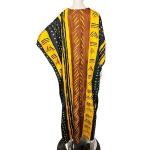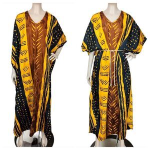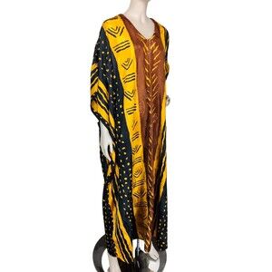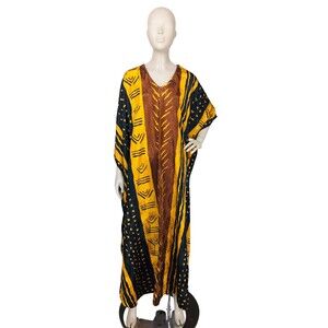 Vintage Animal Print Safari Brocade Caftan Kaftan Muumuu Dress Kisura OSFM