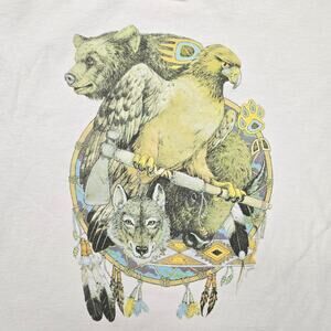 Vintage Animal Shirt White XL Native Wildlife Bear, Hawk, Wolf Nature Tee 90s
