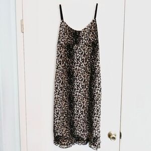 Vintage Animal Print Ruffle Hem Midi Slip Dress