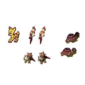 Vintage 1960s Animal Sew On Patches, Parrots Fawn Turtles Cats, for clothing bags etc . 2 each of the parrots, turtles and cats with fiddles . One baby deer - fawn.