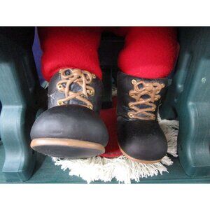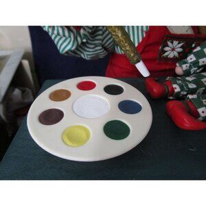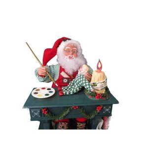 This charming, animated Painting Santa Claus figurine is a delightful addition to your holiday decor. Santa is seen painting a doll while seated at a workbench adorned with festive greenery. Arm and Head move, poseable arms. The scene is illuminated by a glowing candle, creating a whimsical and warm holiday atmosphere. Additionally, a built-in music box plays a classic Christmas tune, adding an extra layer of enchantment. Discolored greenery on candle. Sound quality is terrible. Batteries must be inserted for Christmas music to play. The rest of Santa works when plugged in . Has on/off switch. Vintage 1993 Holiday Creations. See video of Santa in operation, no sound. Music box feature only works with batteries inserted. Music quality is terrible, very tinny and static-ey. Oversized item, will need an oversized box with lots of packing.