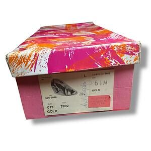 Step into retro glam with these vintage Animato strappy slingback heels in shimmering metallic gold. Featuring a 3” heel, crisscross straps, and rhinestone buckle detail, these shoes bring classic disco-era sparkle. Size 6.5M, originally from JC Penney, complete with original bold graphic box. Perfect for parties, vintage fashion lovers, or collectors of 70s/80s footwear. Pre-owned with some wear to soles and inner lining (see photos), but still stunning on. A rare find with serious throwback vibes.