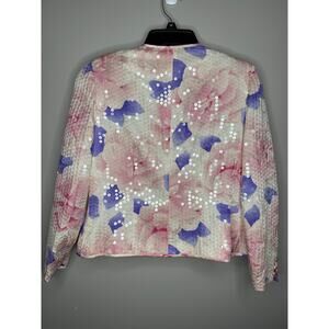 Vintage Ann Crimms Y2K Floral Sequin Button Front Womens Blazer Size 10