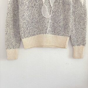 Vintage Ann Katrine Wool Angora Blend Mixed Knit Embellished Sweater in Cream / Ivory / Navy Size 4 fit XS - Small.