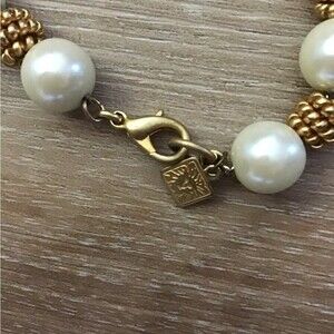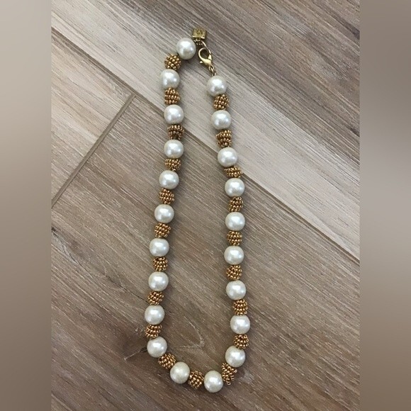 Vintage Ann Klein Glass Pearl Gold Tone Necklace