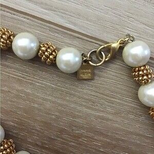 Vintage Ann Klein Glass Pearl Gold Tone Necklace. Signed