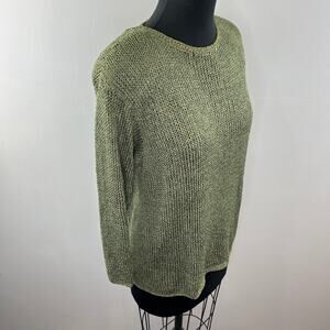 Ann McKenna Green Crochet Sweater Back Button Crew Neck Long Sleeve Pullover