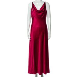 Vintage Ann Taylor 100% Silk Cowl Drape Neck Midi Slip Dress Red Satin XS/4P