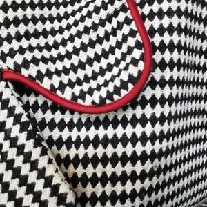 Black & Off White Harlequin / Mini Diamond Print with Red Trim at Collar