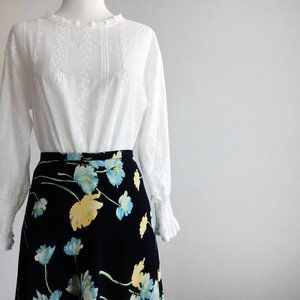 Vintage 90s Ann Taylor floral mini skirt with a flouncy shape.