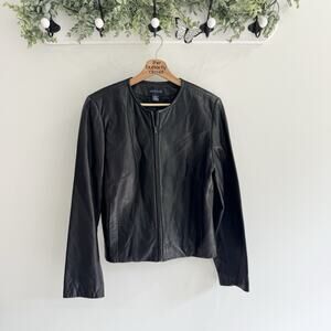 Vintage Ann Taylor Genuine Leather Moto Full Zip Jacket Y2K Medium Grunge Goth