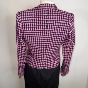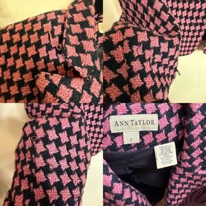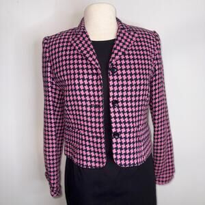 Vintage Ann Taylor Made in USA Wool Blend Blazer Pink & Navy Houndstooth Size 2