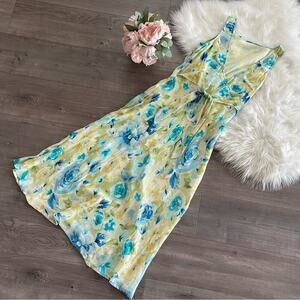 Vintage Ann Taylor Silk Light Green Floral Low Cut Tie Back Maxi Dress 6