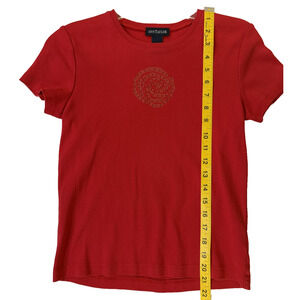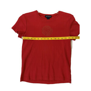 Ann Taylor Shirt Womens Small Red Rose Graphic Stud Embellished Short Sleeve Top- Vintage 90's