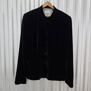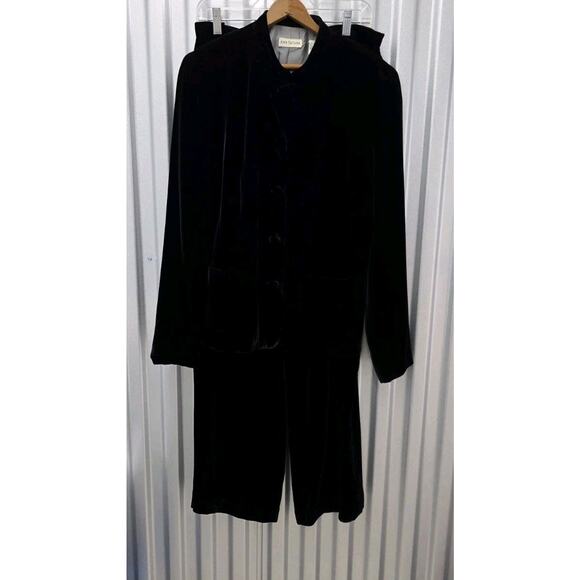 Vintage Ann Taylor Velvet Suit 14 Blazer Pants Black Classic Polished Silk Blend