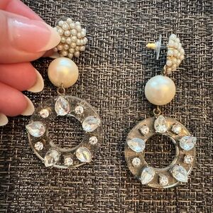 These stunning earrings feature elegant cream pearls and sparkling crystals, perfect for adding a touch of sophistication to any outfit. Worn once or twice, no noted damage or defects.