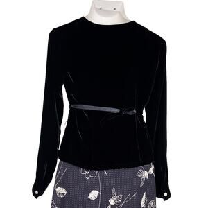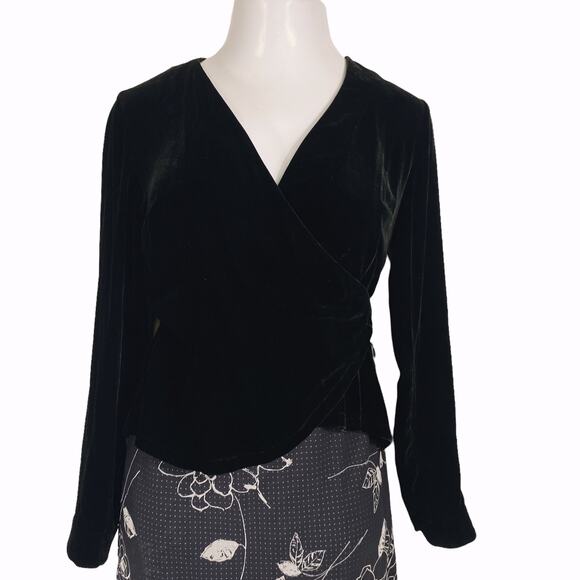 Vintage Ann Taylor Womens Size 2 Black Velvet Long Sleeve Wrap Top