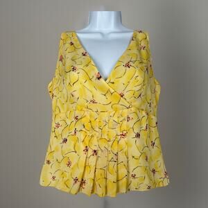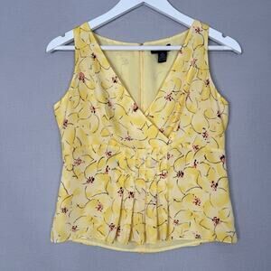 Vintage Ann Taylor Womens Top 4 Yellow Silk Floral Babydoll Dainty Fairy Y2K 90s