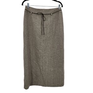 Vintage Ann Taylor Wool Twill Maxi Pencil Skirt 6 Brown Back Slit Equestrian