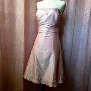 Vintage Ann Taylor Pink Silk Strapless Midi Dress Size 6