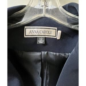 Vintage Anna Carole Womens Blazer Jacket Size 12 Navy Blue Business Career Workwear.