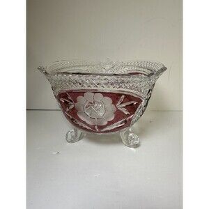 Vintage Anna Hutte Bleikristall 3 Footed Hand Cut Lead Crystal Bowl Germany