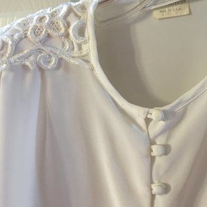Beautiful white sheer blouse by Anna Kristie. Covered buttons. Size 8