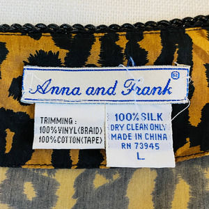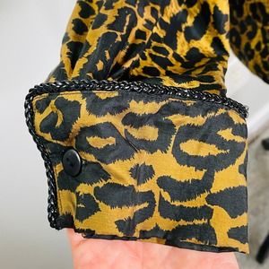 Vintage Anna and Frank Silk Animal Print Button Down with Braided Trim and French Cuffs Womens Size Large Career Casual Luxe Classic Dressy Cocktail Event