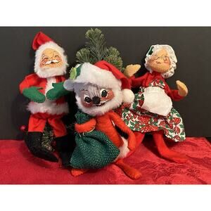 Vintage Annalee Christmas Doll Lot Mr & Mrs Claus & Mouse - 1963/1965 Poseable