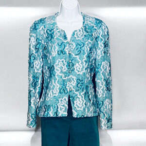 Vintage Anne Crimmins Evening Jacket Turquoise Blue Sequins Lace Glamour Size 4