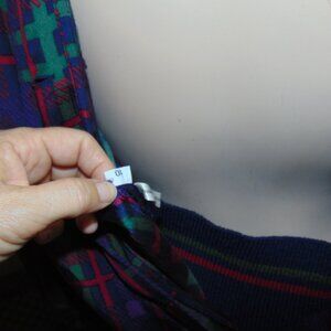 This vintage Anne Crimmins blouse from Umi Collections is a stunning addition to any wardrobe. The silk material is super soft with a contrasting solid inverted print that adds a pop of color to the overall design. The blouse features long balloon sleeves, a round neckline, and a button closure. Perfect for any occasion, this blouse is versatile and can be dressed up or down. The sweater knit style hemlines and inverted front pleat add additional details that make this blouse unique. The size is regular, and it fits a size 10. This blouse is perfect for those who love vintage fashion and want to add a touch of secretarial, girly, or preppy style to their wardrobe.