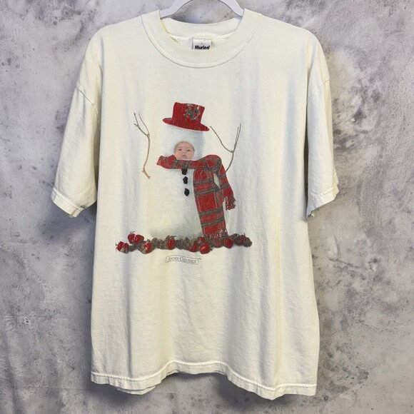 Vintage Anne Geddes T Shirt Mens Large White Christmas Snowman USA