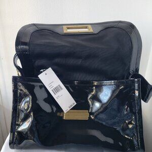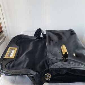 Vintage Anne Klein Black Patent Leather Purse with Gold Twist Closure