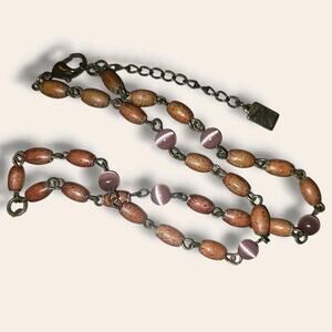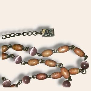 Vintage Anne Klein Etched Mother Of Pearl Pendant Necklace Wood & Glass Beads. Condition is Pre-owned. Shipped with USPS Ground Advantage.